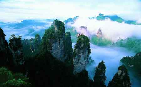 | 下午 | 午餐后游覽“擴(kuò)大的盆景,縮小的仙境”有峰林之王稱號的---天子山景區(qū) (仙女散花、御筆峰、天子閣、云青巖等景點(diǎn)),賀龍公園,十大元帥之一的——賀龍銅像,下山游玩十里畫廊景區(qū)(三姐妹峰、采藥老人、全家福、食指峰、駝駱峰等),乘坐旅游巴士大約50分鐘的車程返回市區(qū),車游“千年古戰(zhàn)場”百丈峽出景區(qū):峽谷因有高近百丈的石壁直插云霄,不敢仰視,故而得名。返回張家界市,天氣晴朗還可車觀“武陵之魂”巍峨天門山、天門洞。入住酒店自由活動。入住酒店后當(dāng)天旅游行程結(jié)束,到次日早餐前為自由活動期,請游客注意自身安全。 |
